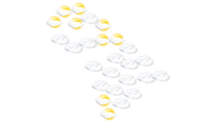 In Diosso überwiegt von morgens bis zum Nachmittag dichte Bewölkung aber es bleibt trocken bei Temperaturen von 22 bis 29°C. Am Abend gibt es in Diosso einen wolkenlosen Himmel bei Werten von 23 bis zu 24°C. In der Nacht gibt es lockere Bewölkung bei Werten von 22°C.