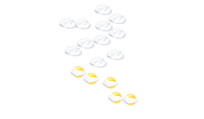 In Dolisie zeigt sich am Morgen die Sonne nur vereinzelt bei sonst wolkigem Himmel und die Temperatur liegt bei 21°C. Am Mittag ist es regnerisch bei Höchsttemperaturen bis zu 27°C. Am Abend bleibt in Dolisie die Wolkendecke geschlossen bei Werten von 21°C. Nachts überwiegt dichte Bewölkung, aber es bleibt trocken bei Werten von 22°C.