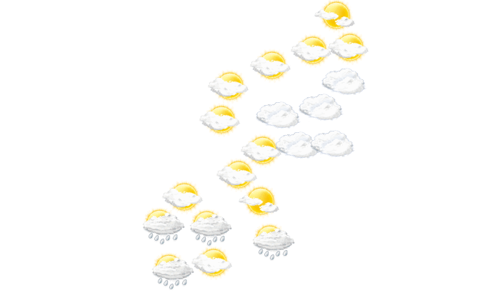 In Dzandza bilden sich morgens leichte Wolken bei Temperaturen von 20°C. Darüber hinaus wechseln sich am Nachmittag und am Abend Wolken und Sonne ab bei Temperaturen von 22 bis 37°C. In der Nacht ziehen Wolkenfelder durch bei Tiefstwerten von 20°C.