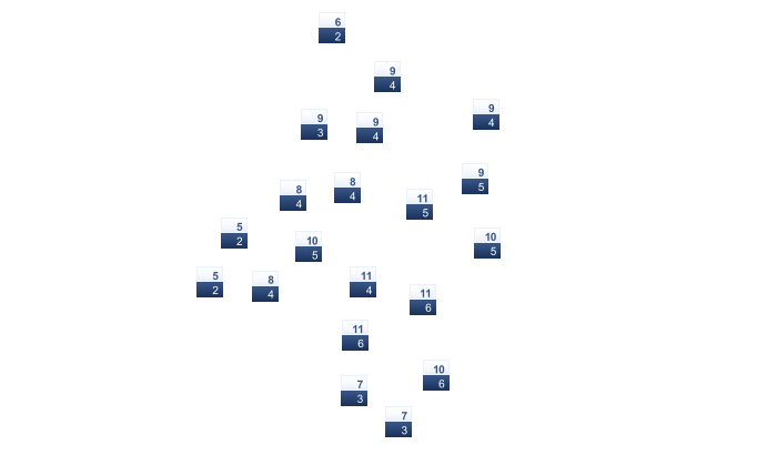 | 2 | 3 | 5 | 9 | 13 | 18 | 20 | 20 | 16 | 12 | 8 | 4 |