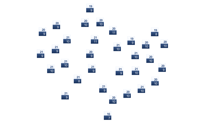 | 2 | 3 | 5 | 9 | 13 | 18 | 20 | 20 | 16 | 12 | 8 | 4 |