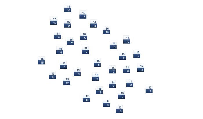 | 2 | 3 | 5 | 9 | 13 | 18 | 20 | 20 | 16 | 12 | 8 | 4 |