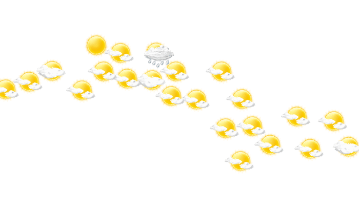 In La Ceiba ziehen morgens Wolkenfelder durch bei Werten von 24°C. Später wird die Sonne von einzelnen Wolken verdeckt und die Temperatur erreicht 29°C. Am Abend gibt es in La Ceiba einen wolkenlosen Himmel bei Werten von 24 bis zu 27°C. In der Nacht bilden sich leichte Wolken und das Thermometer fällt auf 23°C.
