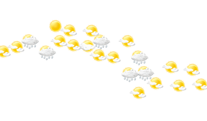 In Delita kommt es am Morgen zu einem Mix aus Sonne und Wolken bei Temperaturen von 27°C. Später sollte der Schirm nicht vergessen werden, da es regnet und die Höchstwerte liegen bei 31°C. Abends gibt es in Delita nur selten Lücken in der Wolkendecke und die Temperaturen liegen zwischen 27 und 29 Grad. In der Nacht sind anhaltende Regen-Schauer zu erwarten bei Tiefstwerten von 27°C.