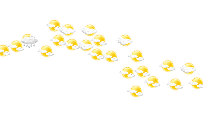 In Nueva Gerona zeigt sich den ganzen Tag die Sonne zwischen einzelnen Wolken und die Temperaturen liegen zwischen 25 und 30°C. Nachts gibt es einen wolkenlosen Himmel bei Werten von 25°C.
