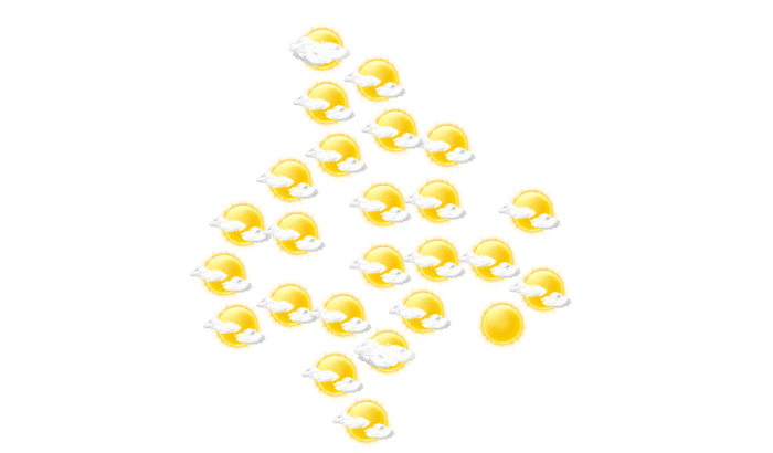 In Florida gibt es am Morgen strahlenden Sonnenschein und die Temperatur liegt bei 21°C. Des Weiteren ist am Nachmittag und am Abend der Himmel bedeckt, die Sonne ist nicht zu sehen bei Temperaturen von 23 bis 29°C. In der Nacht ist es bewölkt, die Sterne sind nur vereinzelt zu sehen und die Werte gehen auf 20°C zurück.