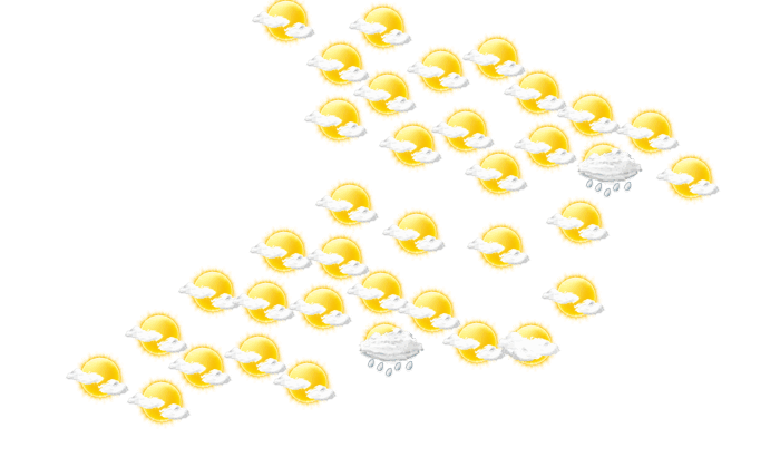 In Bayamo strahlt morgens die Sonne und die Temperatur liegt bei 22°C. Im weiteren Tagesverlauf sollte der Schirm nicht vergessen werden, da es regnet und das Thermometer klettert auf 32°C. Am Abend bilden sich in Bayamo vereinzelt Wolken bei Temperaturen von 23 bis 26°C. Nachts bedecken einzelne Wolken den Himmel bei Werten von 22°C.