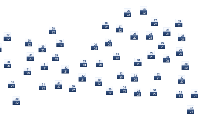 | 28 | 29 | 30 | 31 | 31 | 32 | 33 | 33 | 32 | 31 | 29 | 28 |