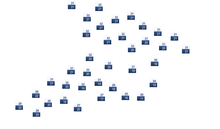 | 28 | 29 | 30 | 31 | 31 | 32 | 33 | 33 | 32 | 31 | 29 | 28 |