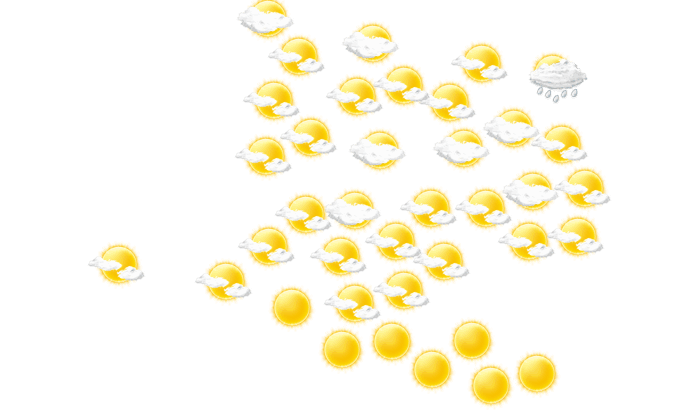 In Matanzas ziehen morgens Wolkenfelder durch und die Temperatur liegt bei 24°C. Darüber hinaus gibt es mittags und auch abends eine Mischung aus Sonne und Wolken und die Temperaturen liegen zwischen 22 und 27 Grad. Nachts ist es klar bei Tiefstwerten von 21°C.