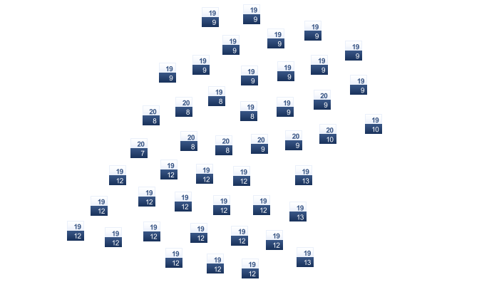| 18 | 21 | 26 | 32 | 39 | 44 | 44 | 45 | 42 | 35 | 27 | 20 |