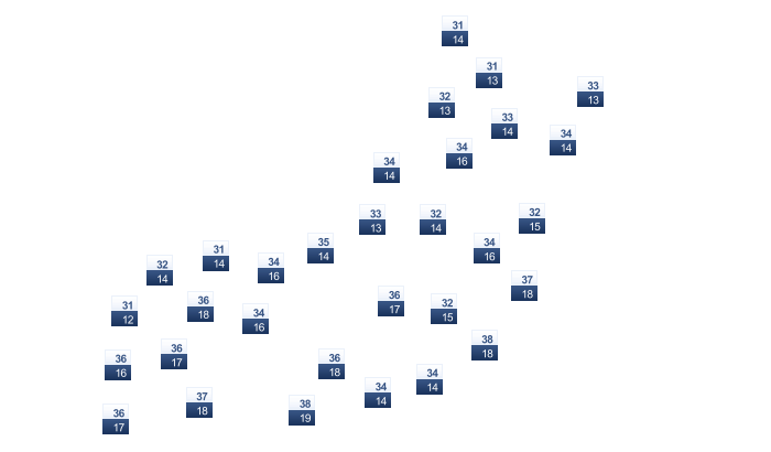 | 28 | 30 | 33 | 34 | 32 | 32 | 31 | 31 | 31 | 31 | 30 | 28 |