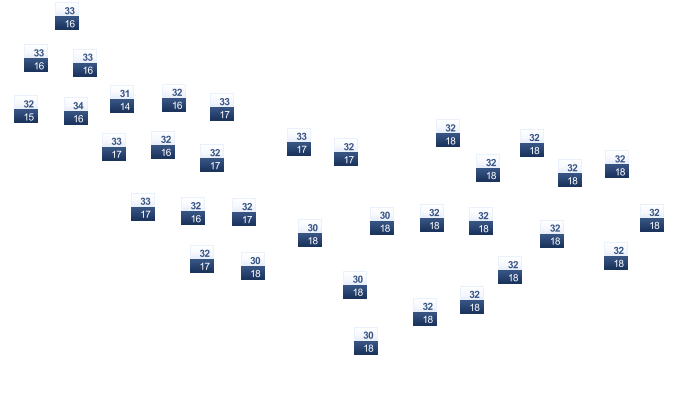 | 28 | 30 | 33 | 34 | 32 | 32 | 31 | 31 | 31 | 31 | 30 | 28 |