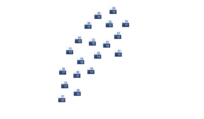 | 28 | 30 | 33 | 34 | 32 | 32 | 31 | 31 | 31 | 31 | 30 | 28 |