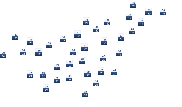 | 28 | 30 | 33 | 34 | 32 | 32 | 31 | 31 | 31 | 31 | 30 | 28 |