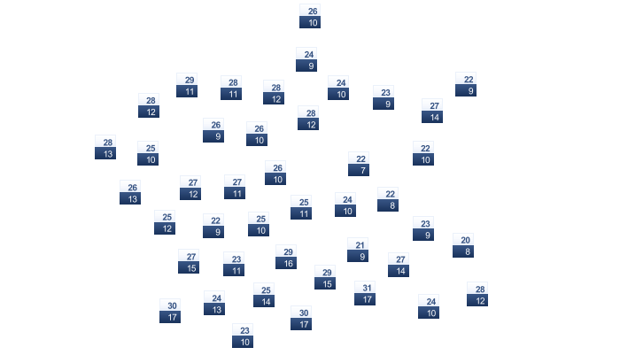 | 28 | 30 | 33 | 34 | 32 | 32 | 31 | 31 | 31 | 31 | 30 | 28 |