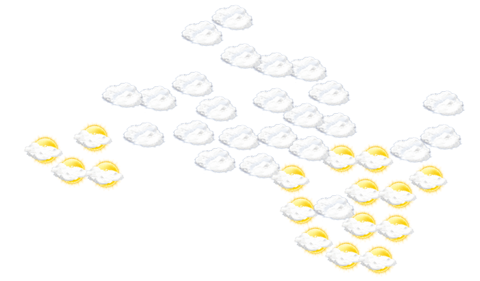 In Pitseng regnet es am Morgen und die Temperatur liegt bei 14°C. Am Mittag bleibt die Wolkendecke geschlossen und die Temperatur erreicht 21°C. Am Abend ist es in Pitseng teils wolkig und teils heiter bei Werten von 14 bis zu 16°C. Nachts gibt es einen wolkenlosen Himmel bei Tiefsttemperaturen von 11°C.