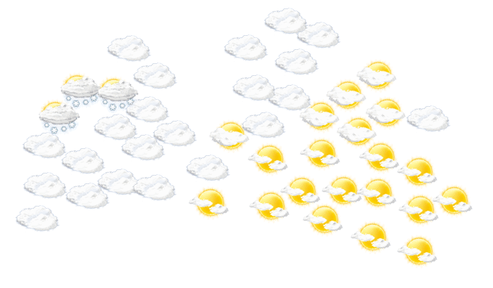 In Veismaņi ist es morgens überwiegend dicht bewölkt bei Temperaturen von -12°C. Später gibt es lockere Bewölkung bei Höchsttemperaturen bis zu -7°C. Am Abend gibt es in Veismaņi keine Wolken bei Temperaturen von -13 bis -11°C. In der Nacht bilden sich leichte Wolken und die Temperatur sinkt auf -17°C. Mit Böen zwischen 9 und 28 km/h ist zu rechnen.