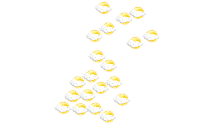 In Tyros sind am Tag Teile des Himmels mit Wolken bedeckt, die Sonne ist aber zwischendurch sichtbar bei Temperaturen von 15 bis 18°C. In der Nacht gibt es nur selten Lücken in der Wolkendecke bei Tiefsttemperaturen von 16°C. Mit Böen zwischen 17 und 27 km/h ist zu rechnen.
