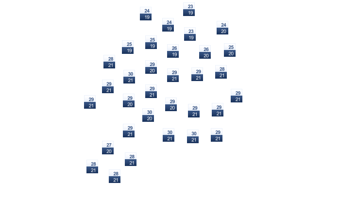 29 | 29 | 30 | 30 | 30 | 28 | 27 | 27 | 28 | 29 | 29 | 29 |