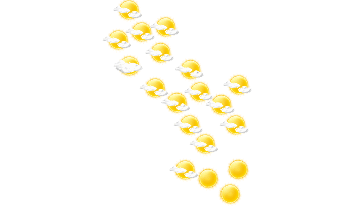 In Geesanken ist es am Morgen leicht bewölkt und die Temperatur liegt bei 23°C. Im weiteren Tagesverlauf ist es regnerisch und das Thermometer klettert auf 34°C. Am Abend ist es in Geesanken wolkenlos und die Temperaturen liegen zwischen 24 und 26 Grad. Nachts ist es überwiegend klar mit vereinzelten Wolken bei Tiefsttemperaturen von 23°C.