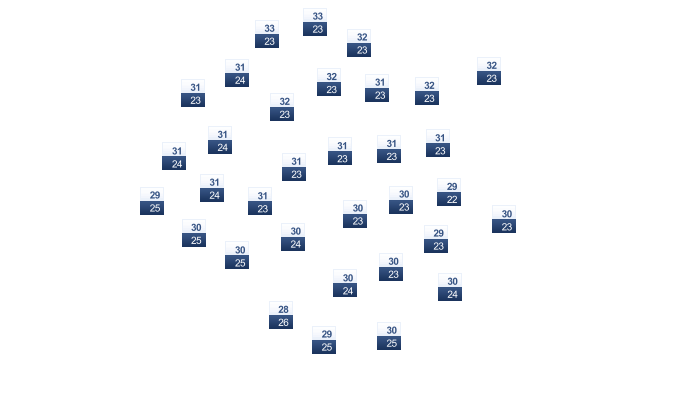 | 29 | 29 | 30 | 30 | 30 | 28 | 27 | 27 | 28 | 29 | 29 | 29 |