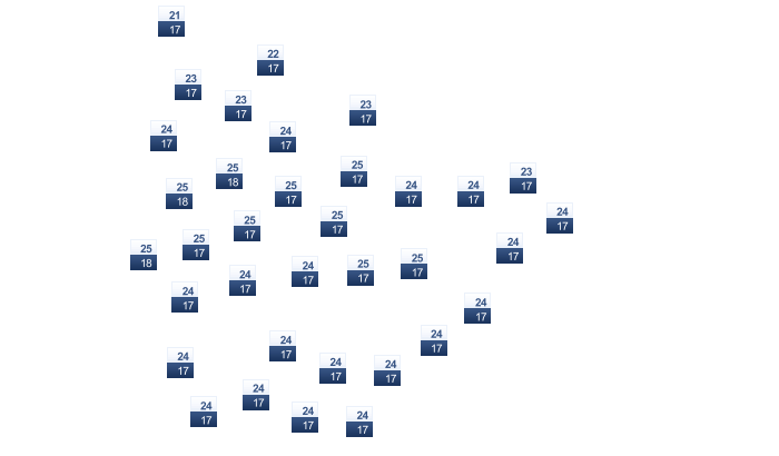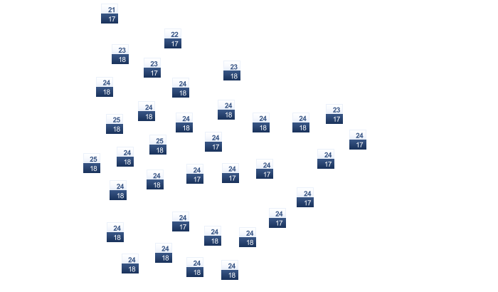 | 18 | 19 | 22 | 26 | 30 | 33 | 32 | 33 | 32 | 29 | 24 | 19 |