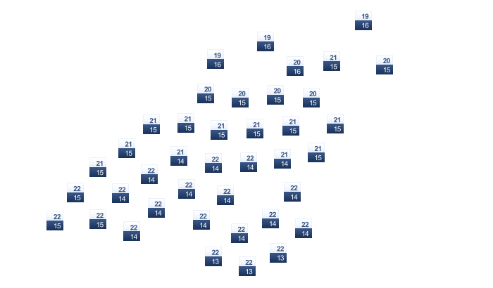| 18 | 19 | 22 | 26 | 30 | 33 | 32 | 33 | 32 | 29 | 24 | 19 |