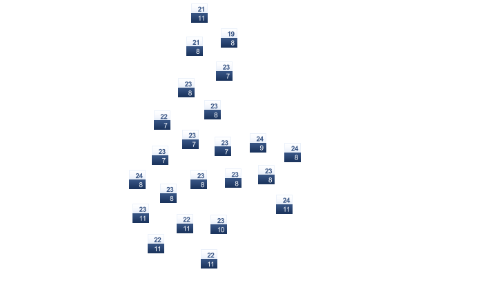 | 18 | 19 | 22 | 26 | 30 | 33 | 32 | 33 | 32 | 29 | 24 | 19 |