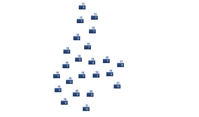 | 18 | 19 | 22 | 26 | 30 | 33 | 32 | 33 | 32 | 29 | 24 | 19 |
