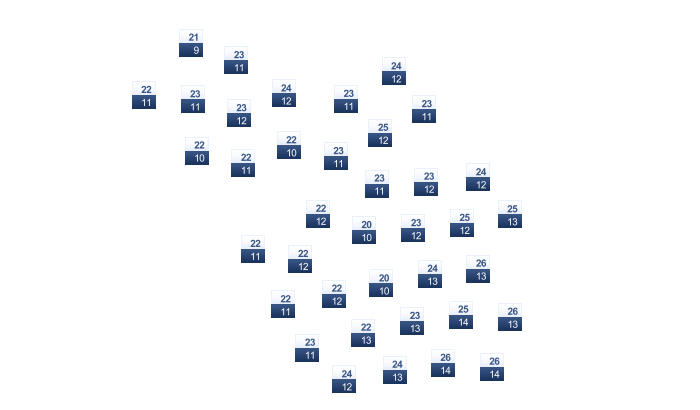 | 18 | 19 | 22 | 26 | 30 | 33 | 32 | 33 | 32 | 29 | 24 | 19 |