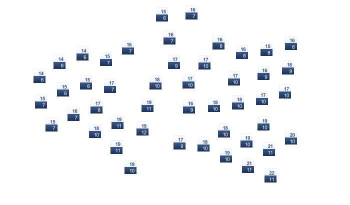 | 18 | 19 | 22 | 26 | 30 | 33 | 32 | 33 | 32 | 29 | 24 | 19 |