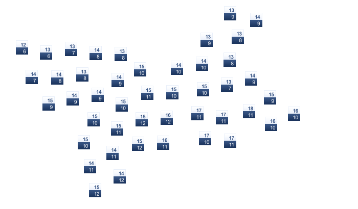 | 18 | 19 | 22 | 26 | 30 | 33 | 32 | 33 | 32 | 29 | 24 | 19 |