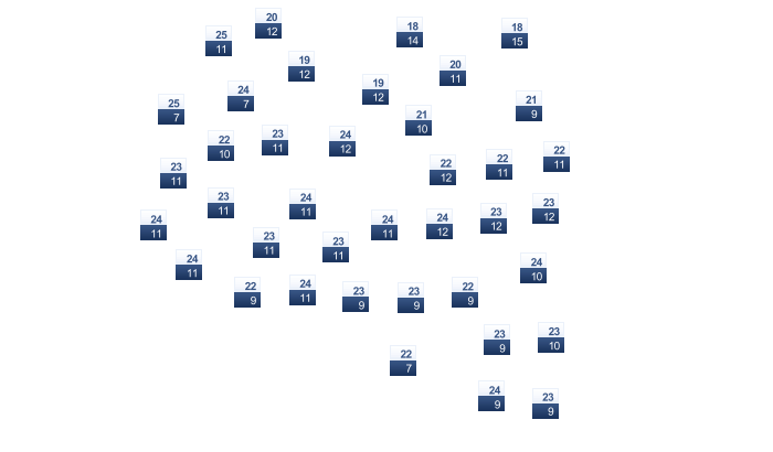 | 18 | 19 | 22 | 26 | 30 | 33 | 32 | 33 | 32 | 29 | 24 | 19 |
