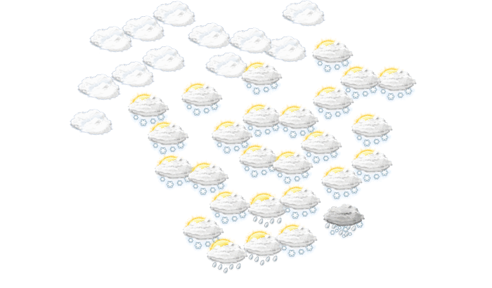 In Šiauliai ist vormittags und auch am Nachmittag der Himmel bedeckt, die Sonne ist nicht zu sehen bei Temperaturen von -3 bis -2°C. Am Abend kommt es in Šiauliai zu Schneefällen und die Temperatur liegt bei -3°C. Nachts schneit es bei Tiefstwerten von -2°C. Mit Böen zwischen 30 und 32 km/h ist zu rechnen.