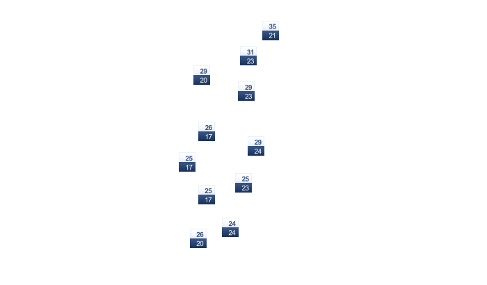 | 29 | 29 | 29 | 28 | 26 | 25 | 24 | 24 | 25 | 26 | 28 | 29 |