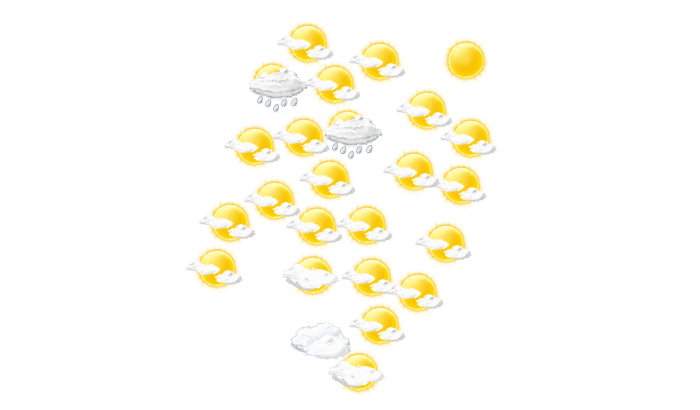 In Fandriana ist es am Morgen teils wolkig und teils heiter bei Werten von 15°C. Mittags gibt es nur selten Lücken in der Wolkendecke und die Höchstwerte liegen bei 27°C. Am Abend regnet es in Fandriana bei Temperaturen von 16 bis 17°C. In der Nacht ist es wolkig bei Tiefsttemperaturen von 15°C.