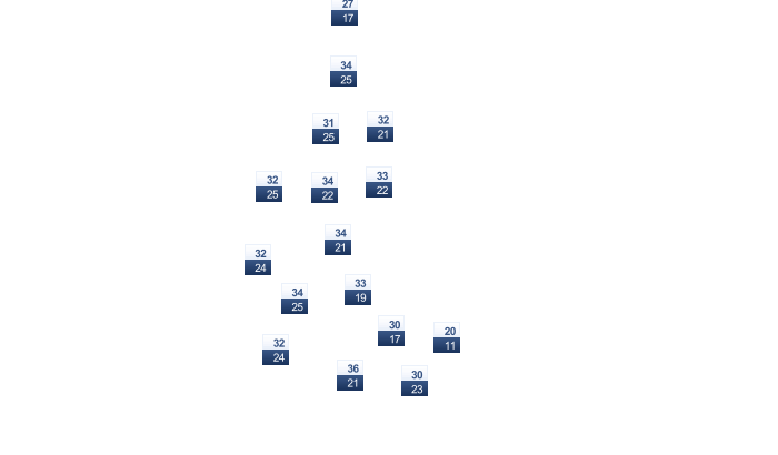 | 29 | 29 | 29 | 28 | 26 | 25 | 24 | 24 | 25 | 26 | 28 | 29 |