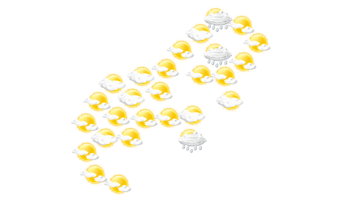 In Ambato Boeny wird am Morgen die Sonne von einzelnen Wolken verdeckt bei Werten von 23°C. Im weiteren Tagesverlauf ziehen Wolkenfelder durch bei Höchsttemperaturen bis zu 33°C. Am Abend überwiegt in Ambato Boeny dichte Bewölkung aber es bleibt trocken bei Temperaturen von 25 bis 27°C. In der Nacht gibt es nur selten Lücken in der Wolkendecke bei Tiefsttemperaturen von 24°C.