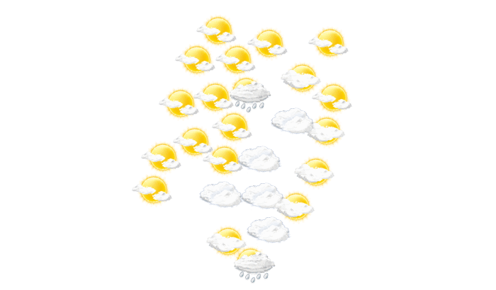 In Ihosy wird morgens die Sonne von einzelnen Wolken verdeckt bei Werten von 22°C. Im weiteren Tagesverlauf gibt es mehr Wolken als Sonne und die Temperaturen erreichen 34°C. Am Abend gibt es in Ihosy Regen bei Temperaturen von 22 bis 25°C. In der Nacht ist es wolkig und die Werte gehen auf 21°C zurück.