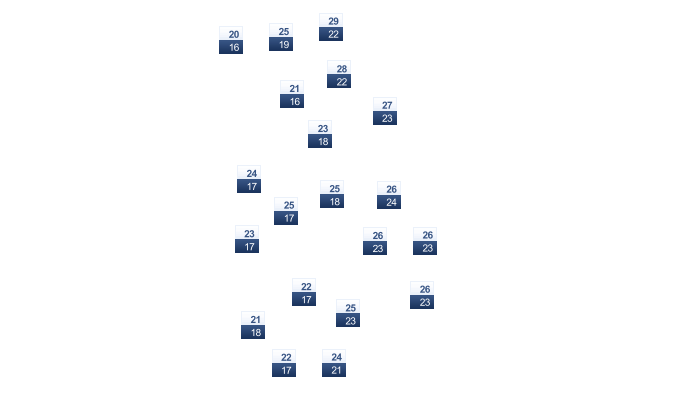 | 28 | 28 | 27 | 27 | 26 | 24 | 23 | 26 | 29 | 31 | 30 | 29 |