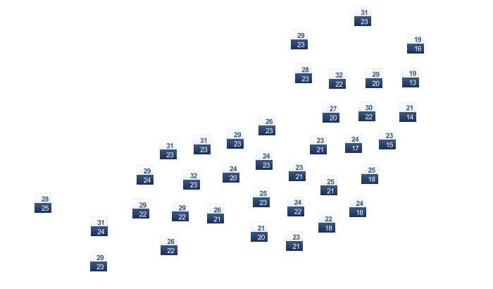 | 30 | 30 | 31 | 31 | 32 | 32 | 31 | 32 | 31 | 31 | 31 | 31 |