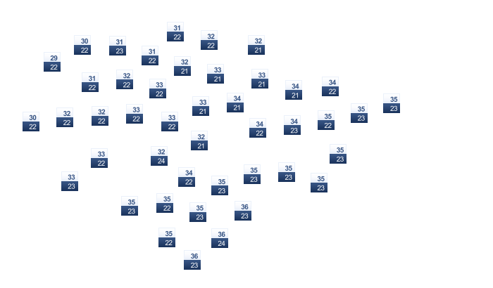 | 33 | 36 | 38 | 39 | 38 | 35 | 32 | 31 | 32 | 34 | 35 | 33 |