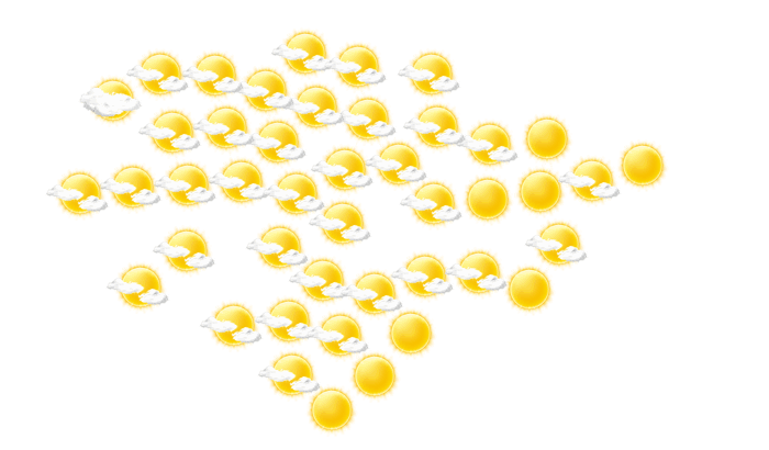 In Douentza ist es morgens locker bewölkt bei Werten von 22°C. Mittags wechseln sich Wolken und Sonne ab und die Temperatur steigt auf 36°C. Abends ist es in Douentza leicht bewölkt bei Werten von 27 bis zu 29°C. Nachts gibt es keine Wolken und die Sterne sind klar zu erkennen bei Tiefstwerten von 21°C.