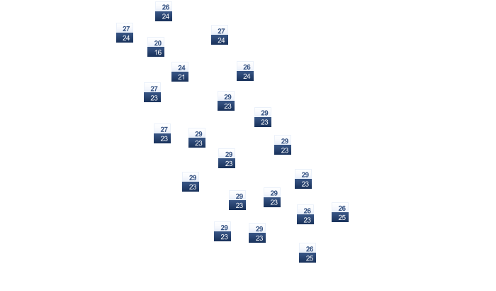 | 27 | 27 | 28 | 29 | 29 | 29 | 29 | 29 | 30 | 29 | 29 | 28 |