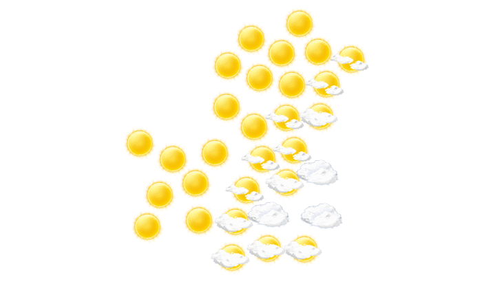 In Kiffa kann sich morgens die Sonne nicht durchsetzen und es bleibt bedeckt bei Werten von 19°C. Im weiteren Verlauf des Tages ist es von mittags bis zum Abend hin überwiegend dicht bewölkt bei Temperaturen von 23 bis 28°C. Nachts ist ein Blick auf die Sterne nur vereinzelt bei sonst wolkigem Himmel möglich bei Tiefsttemperaturen von 20°C.