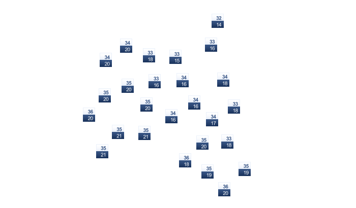 | 27 | 30 | 34 | 36 | 39 | 42 | 42 | 41 | 40 | 37 | 33 | 28 |