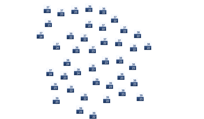 | 12 | 14 | 17 | 20 | 23 | 27 | 27 | 27 | 27 | 23 | 18 | 14 |