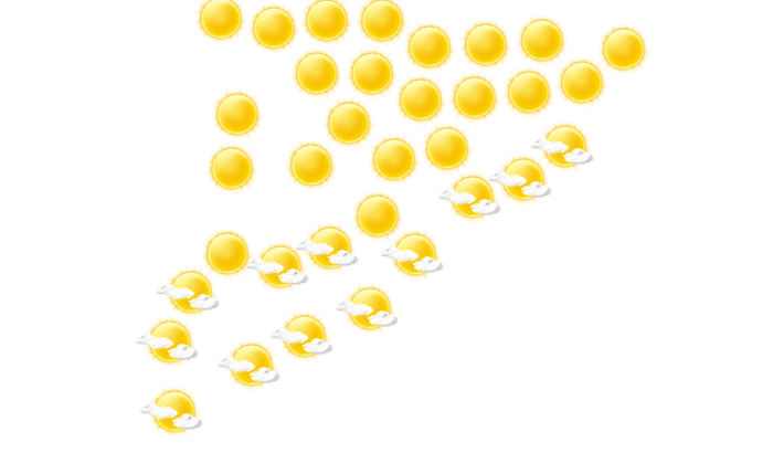 In Rosso gibt es am Tag lockere Bewölkung bei Werten von 21 bis zu 33°C. In der Nacht ist ein Blick auf die Sterne nur vereinzelt bei sonst wolkigem Himmel möglich bei Tiefstwerten von 20°C.