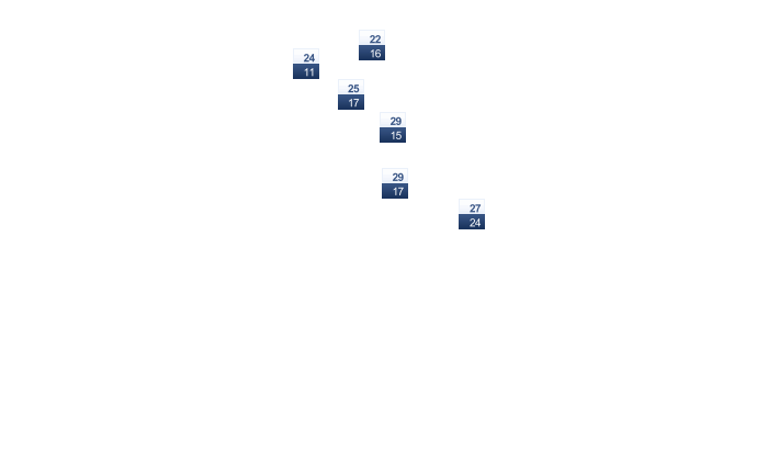 | 21 | 21 | 21 | 22 | 23 | 24 | 24 | 24 | 24 | 24 | 23 | 22 |